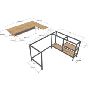 Bàn chữ L RIGEL 140x110cm gỗ cao su CD68039