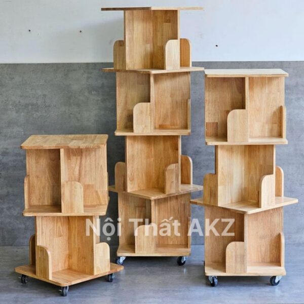 Kệ sách di động 4 tầng gỗ tự nhiên KZ93 sử dụng chất liệu chính là gỗ cao su tự nhiên được xử lý chống thấm nước, chống cong vênh bền bỉ theo thời gian. Thiết kế độc đáo với mỗi tầng xoay 45 độ với nhau và mỗi tầng chia thành 4 ngăn nhỏ bên cạnh đó dưới chân kệ được trang bị bánh xe có khoá tiện lợi. Gỗ ngoài mà tự nhiên nhiều màu sắc để bạn lựa chọn tuỳ theo không gian khác nhau.