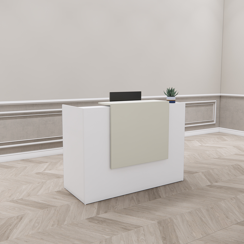 Quầy lễ tân QLT031 sở hữu kiểu dáng hình khối vuông vức, dễ dàng bố trí trong nhiều loại hình không gian như văn phòng công ty, showroom, thẩm mỹ viện, spa hay phòng khám. Bề mặt phẳng kết hợp mảng ốp nổi bật phía trước giúp tạo cảm giác chuyên nghiệp và chỉn chu ngay từ cái nhìn đầu tiên.