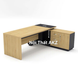 Bàn Giám Đốc Chữ L BGD060L có kích thước tổng thể (Dài: 200 cm x Rộng: 160 cm x Cao: 75 cm), đi kèm hộc tủ bên trái (40 cm x 160 cm) với bốn ngăn kéo, mặt bàn gỗ màu gỗ sồi tự nhiên, khung chân và hộc tủ sơn màu xám đậm, tạo nên vẻ ngoài thanh lịch và hiện đại.