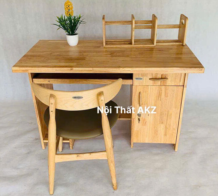 Bàn Làm Việc gỗ cao su 1m (gỗ 1,8) (Mã SP: BLV-CH1M) được làm từ 100% gỗ cao su tự nhiên đã qua tẩm sấy chống mối mọt, ẩm mốc nên sản phẩm có độ bền cao. Bàn làm việc hiện đại được phủ một lớp sơn PU bóng mờ giúp nổi bật vân gỗ tự nhiên, chống thấm, hạn chế trầy xước và an toàn cho người dùng.