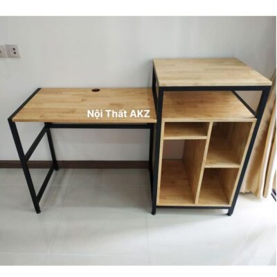 Bàn Vi tính gỗ cao su khung sắt kết hợp kệ (137x50x92cm) với chất liệu mặt bàn và kệ gỗ cao su tiêu chuẩn AA dày 17mm sơn PU hoàn thiện với nhiều màu sắc lựa chọn, hệ khung chân sắt hộp sơn tĩnh điện chất lượng cao, lắp ráp. Mẫu bàn kết hợp gồm 1 bàn và 1 kệ rời để CPU và máy in, kích thước bề mặt bàn rộng 50cm phù hợp với nhiều không gian và mục đích sử dụng
