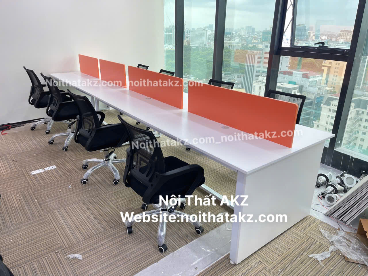 Hình ảnh Cụm bàn làm việc nhóm chân sắt có yếm che mã KZ2401