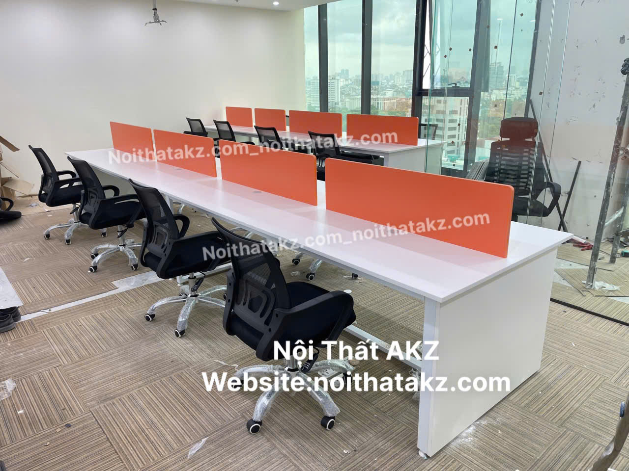 Cụm bàn làm việc nhóm chân sắt có yếm che mã KZ2401 thuộc dòng sản phẩm dành cho các văn phòng thiết kế dãy bàn làm việc.