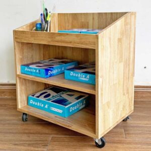 Tủ di động đựng văn phòng phẩm TCN68040 có thiết kế 3 tầng để lưu trữ các vật dụng văn phòng như giấy, bút, tài liệu và các dụng cụ khác. Với chất liệu chính được sử dụng là gỗ cao su AA chuẩn xuất khẩu, đã được xử lý chống cong vênh, bề mặt được sơn phủ PU chống thấm nước rất dễ làu chùi dọn dẹp, có màu sắc tự nhiên đẹp mắt. Bên cạnh đó, tủ trang bị bánh xe có khoá dễ dàng di chuyển khi cần rất tiện lợi. Tủ di động TCN68040 thường được sử dụng trong các văn phòng, trường học, thư viện hoặc các không gian làm việc khác.