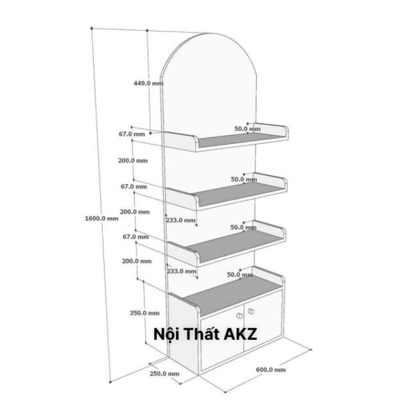 Kệ trưng bày mỹ phẩm KTBKZ89 sở hữu thiết kế hiện đại, với tấm gỗ phía sau được bo tròn phía bên trên rất độc đáo, giúp tạo điểm nhấn thu hút mọi ánh nhìn. Mẫu kệ này không chỉ là nơi trưng bày hoàn hảo cho các loại mỹ phẩm, chai lọ mà còn là món đồ nội thất trang trí tinh tế cho không gian sống. Với các ngăn kệ phân chia khoa học, kết hợp với tủ đựng đồ bên dưới giúp bạn sắp xếp sản phẩm gọn gàng, dễ dàng tìm kiếm.