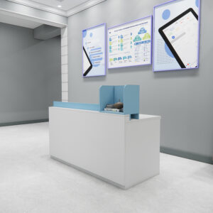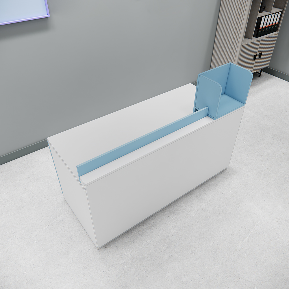 Quầy lễ tân QLT005 là lựa chọn lý tưởng cho những không gian hiện đại như văn phòng, spa, showroom hay khu vực tiếp đón khách hàng tại các cơ sở dịch vụ. Thiết kế đơn giản mà tinh tế, kết hợp màu trắng – xanh pastel tạo cảm giác dễ chịu, sạch sẽ và chuyên nghiệp cho khu vực lễ tân.