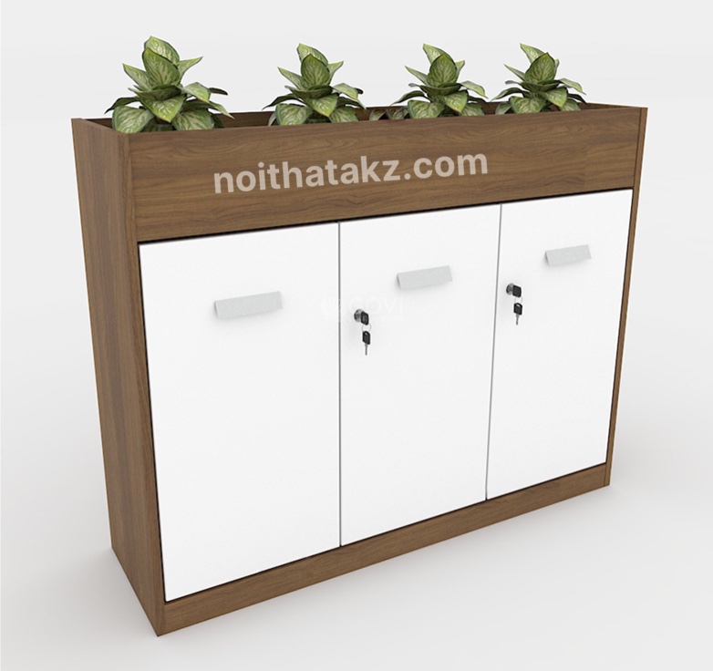 Kiểu dáng : Tủ kiểu dáng hiện đại, đơn giản. Thiết kế 3 cánh cửa đóng kín có tay cầm cất giữ tài liệu, đồ dùng cá nhân khoa học, ngăn nắp hơn. Phía trên tủ có thể dùng để trang trí cây, tạo không gian xanh mát cho văn phòng làm việc.