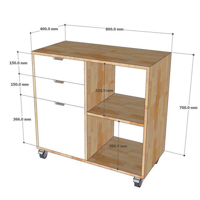 Chất liệu : Gỗ cao su tiêu chuẩn AA dày 17mm. Bánh xe có khoá.